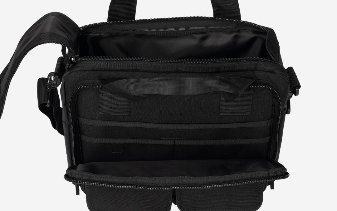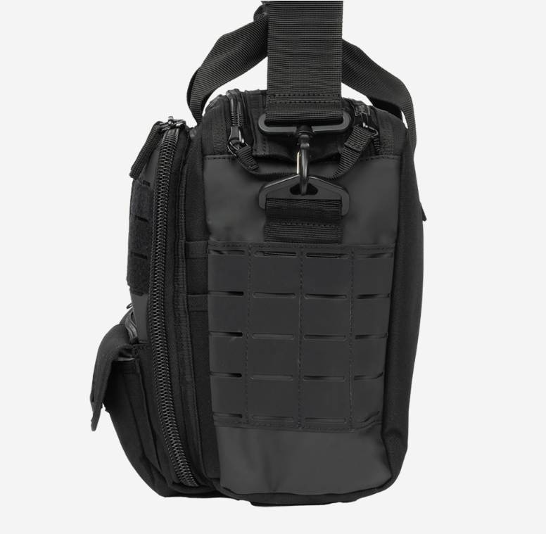The COMMANDER is a mid-size shoulder bag featuring multiple pockets, storage compartments, and MOLLE panels for all the gear.