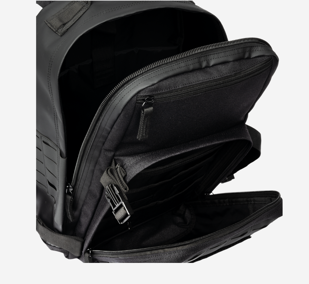 DETAILS AND FEATURESFront and side hypalon MOLLE for attaching accessories Front pocket with internal slip and zippered pockets Quick access top pocket and fits mini PRP Fits up to a 15" laptop Features: Main Compartment: 18"x 11"x 6.5" Bottom Front Pocket: 12" x 9" x 1.75" Weight: 2lbs Capacity: 24L