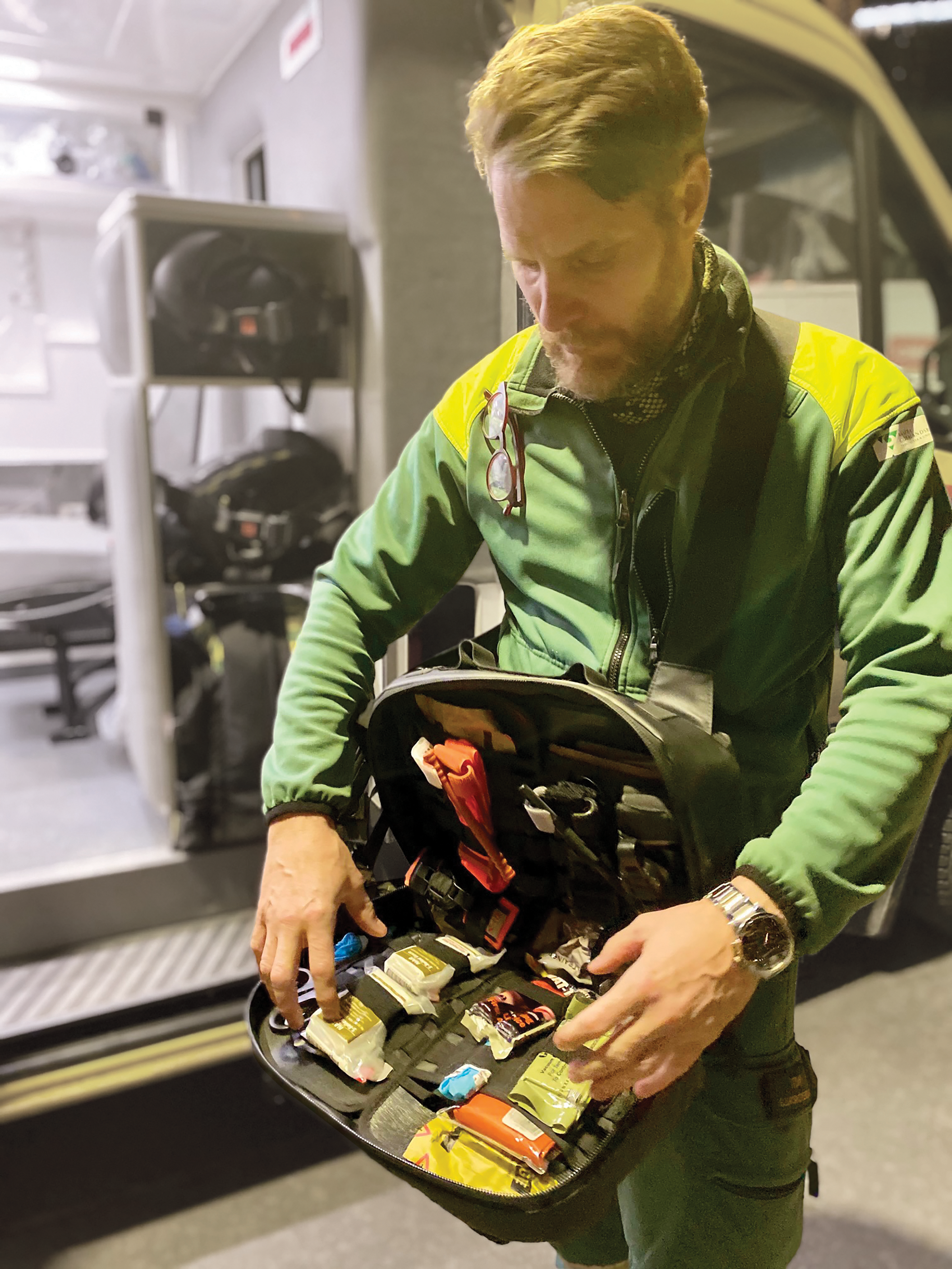 One large pocket and interwoven elastic webbing to securely hold a variety of trauma supplies